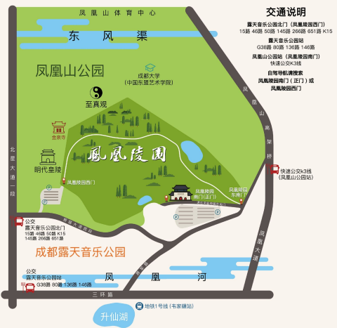 交通信息:乘坐15路、46路、50路、651路至凤凰山下车,步行至园区